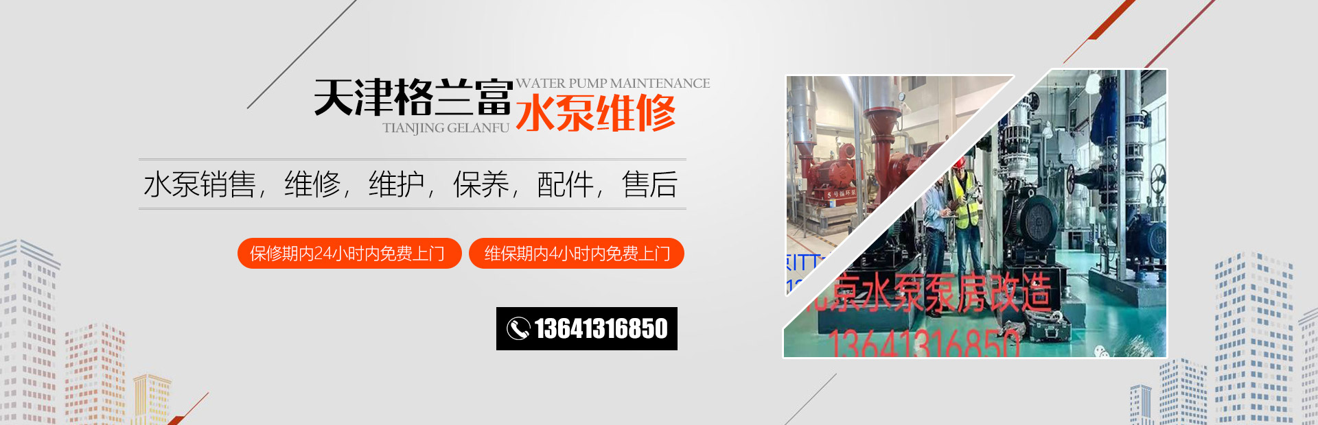 格兰富水泵销售(天津)有限公司正式成立于2017年,天津格兰富水泵售后维修配件,天津格兰富水泵售后维修配件.天津格兰富污水泵销售,天津格兰富水泵售后维修配件,天津格兰富水泵销售.格兰富水泵销售.天津格兰富水泵维修.天津格兰富水泵售后维修配件销售.天津格兰富水泵安装.天津格兰富水泵售后维修配件,天津格兰富售后维修保养配件.天津格兰富水泵.天津格兰富电机维修.格兰富水泵配件销售.格兰富水泵售后维修服务的公司。公司由多位原厂水泵技术人员组成,在天津地区有着多年的水泵销售和技术维修改造 水泵机房改造,暖通机房改造,热力站改造,污水站改造,排水站改造,设计维修改造经验。在业界享有良好的商誉。本公司本着以技术推动销售的方针,稳步前进。我们将以真诚的服务感谢社会各界对我们的支持与信赖。